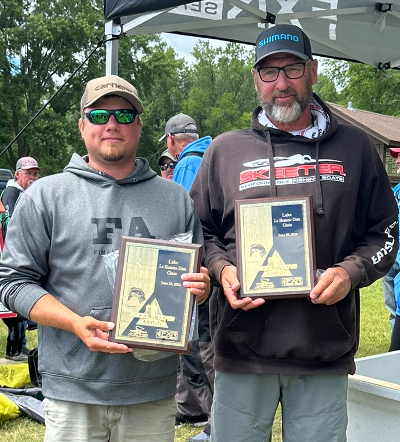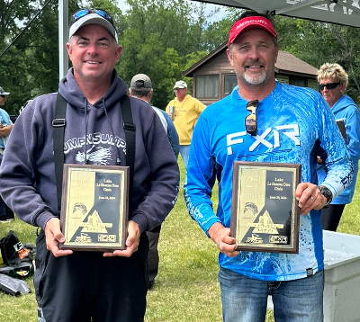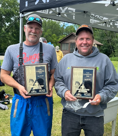 We have a new leader in the Lakes Area Arms Big Bass of the year award. The Team of Todd and Chris Kelm caught a giant 5.07 largemouth! If that holds with one event to go, they will receive two $500 gift certificates to Lakes Area Arms. That big bass also propelled them to a 6th place finish on the day. They also recieved $300 for big bass of the event from FXR.